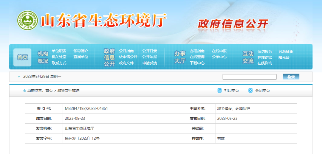 04.山东省发布《山东省减污降碳协同增效实施方案》(2023.05.23)