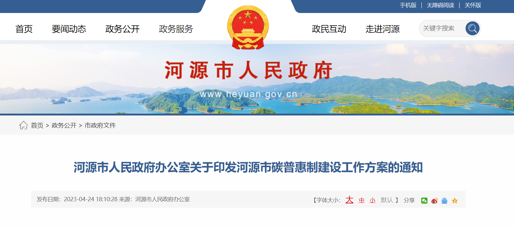 2023/06/05 03:06:4001.广东省河源市发布《河源市碳普惠制建设工作方案》(2023.04.24)