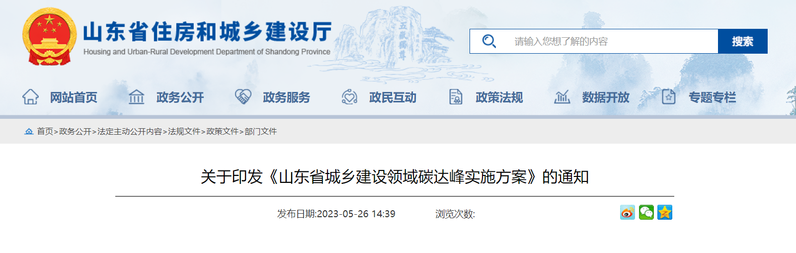 05.山东省发布《山东省城乡建设领域碳达峰实施方案》(2023.05.26)