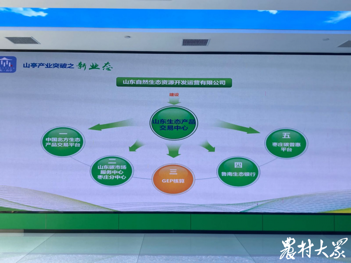 记者获悉,山东生态产品交易中心下设中国北方生态产品交易平台、山东碳汇市场服务中心枣庄分中心、GEP核算、鲁南生态银行、枣庄碳普惠平台五项核心业务。